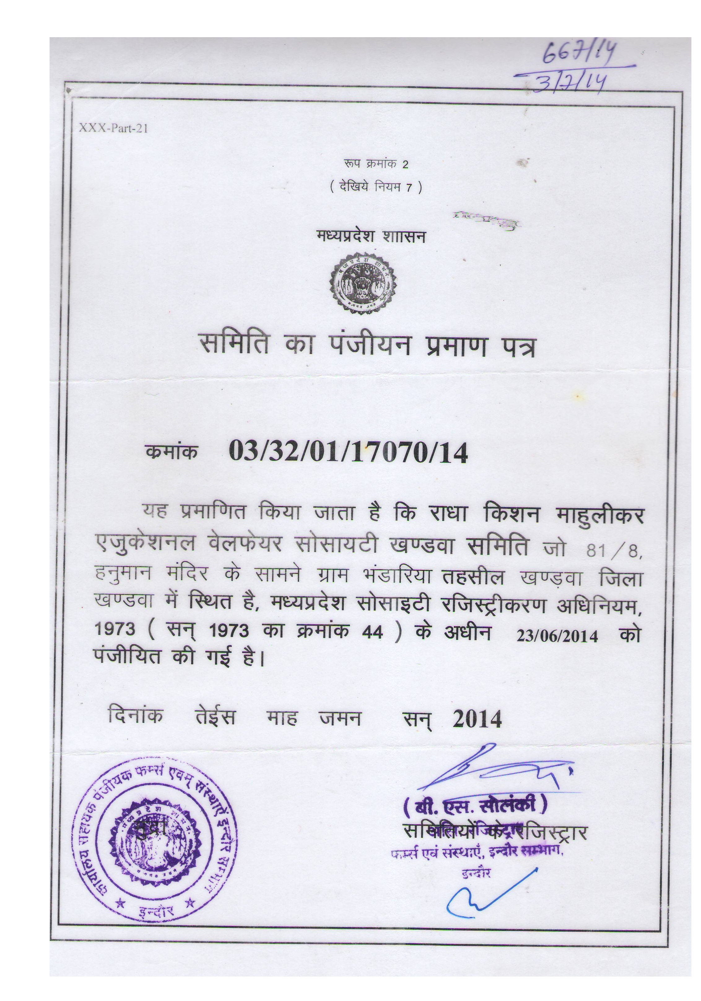 | 2 | Copies of Societies/trust/company Registration/renewal Certificate | VIEW |